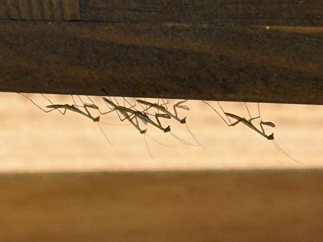 昨秋、ゴーヤの枯れたツルを外していたら、カマキリの卵をふたつ見つけて、仕事場の室内に入れた植木の上に置いていた。風で飛んだりしない様に何かに入れて外に出すつもりでいた。